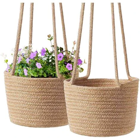 【Materiale Premium】 Il cesto fioriera sospeso è realizzato in corda di cotone naturale di qualità e corde di iuta, accuratamente lavorate a mano. L’artigianato è squisito, non si deforma facilmente e può essere utilizzato a lungo.