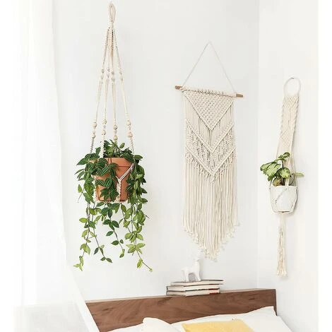 - Stile versatile che può essere appeso a un gancio nel soffitto o contro un muro come un muro sospeso. Il portavasi è un regalo ideale per inaugurare la casa, matrimoni e amanti della bohème. Nessuna nappa in basso.
