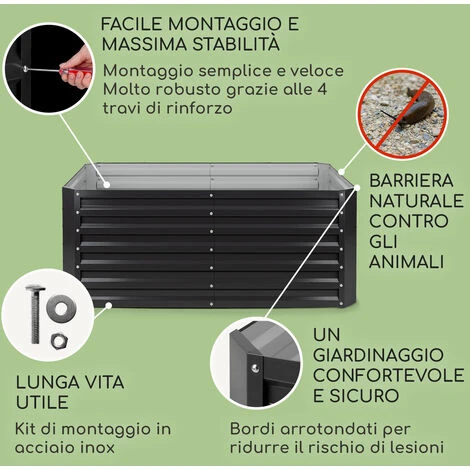 DESIGN INNOVATIVO: Questa fioriera da esterno ti impedisce di doverti chinare in basso per prenderti cura delle tue piante sforzando la tua schiena. L’orto rialzato da esterno aiuta inoltre a proteggere le tue piante da insetti e piccoli animali.