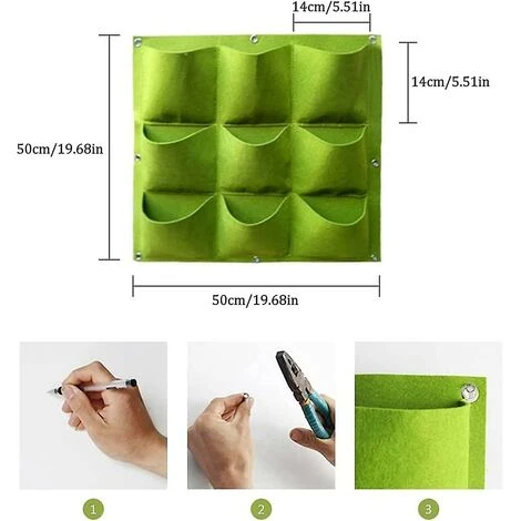 - Facile da piantare: i sacchi per la coltivazione sono cuciti con filato di poliestere ad alta resistenza e possono essere semplicemente appesi al muro con i ganci. Sono facili da installare e riparare. Forti e durevoli, non sono facili da staccare o ossidare. Riutilizzabile, leggero, economico e pratico.