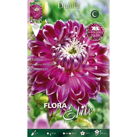 Dahlia Dinnerplate Vancouver XL, volubili e bizzarre screziature fucsia e bianche percorrono i petali di questa dalia a fiori giganti da valorizzare come protagonista nelle composizioni di fiori recisi o come macchia cromatica in un giardino nei toni rossi e verde chiaro. Gradisce concimazioni potassiche liquide frequenti per fiorire al massimo sino a fine ottobre. Bulbi primaverili adatti per essere piantati in aiuole, giardino e vasi. Caratteristiche dei bulbi: 1 bulbo calibro I Ottimo per Aiuole, giardino, VasiColore: Fucsia e biancoProduce Fiori XL fino a 20cm di diametroMese Piantagione: 3-4-5Mese FIoritura: 6-10Altezza: 90cmLuce: sole-mezz’ombraProfumo: NoRecidere: Si.
