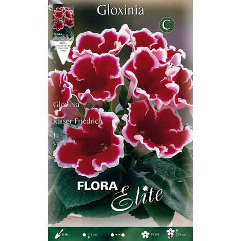 Gloxinia Kaiser Friedrich, vecchia gloria dei giardinieri da appartamento e da balcone, questa gloxinia a grandi corolle rosse marginate di bianco vive bene all’aperto da quando la temperatura dell’aria si attesta su valori minimi di 18 °C, ma apprezza temperature più elevate e una buona umidità atmosferica. In alternativa può essere coltivata al riparo in appartamento e in serra, in vasi di 18 cm di diametro tenuti lontano dal sole diretto. Caratteristiche dei bulbi: 1 bulbo calibro 5/6Per Balcone, vasiColore: rosso, biancoMese Piantagione: 7-8-9-10-11-12Mese FIoritura: 2-3Altezza 25-30cmProfumo: noRecidere: no.