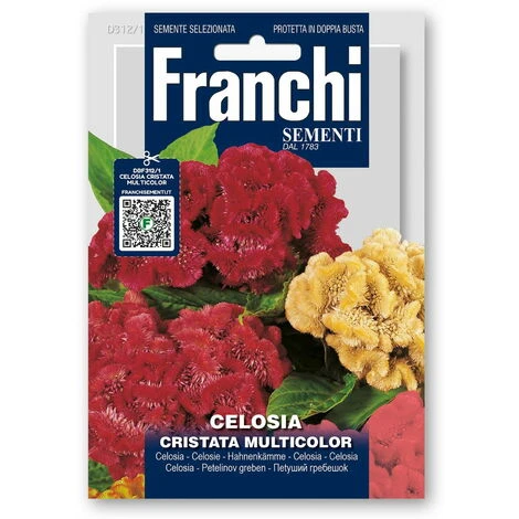 La pianta di Celosia cristata multicolor, conosciuta come “Cresta di gallo”, è una pianta annuale di facile coltivazione, produce infiorescenze a ventaglio molto vistose e colorate, che ricordano la cresta dei galli. Il fogliame è verde scuro, ruvido, con nervature evidenti. Raggiunge l’altezza di circa 50 cm. Predilige un’esposizione a pieno sole, le annaffiature devono essere moderate, evitando i ristagni idrici, frequenti le nebulizzazioni. Indicata per aiuole, bordure e come fiore da recidere.