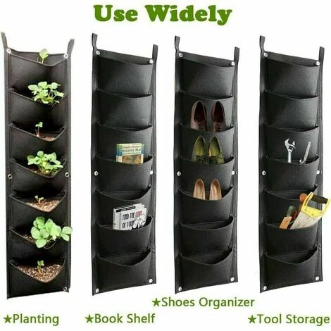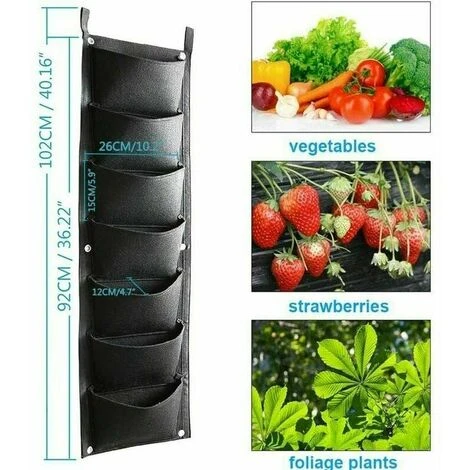 Specifiche: Dimensioni: 30 x 100 cm. Tasca: 7 Colore principale: nero. Utilizzo: montaggio a parete Contenuto della confezione: 2 sacchetti per piante Istruzioni: 1. Metti i nutrienti necessari nella borsa. 2. Fissarlo alla parete desiderata con viti o corda. 3. Puoi innaffiare o sporcare correttamente le piante nel periodo successivo e goderti la vita verde Nota: 1. Alcuni acquirenti hanno affermato che l’acqua si asciuga rapidamente, i seguenti metodi possono aiutarti. Metodi: Metti le piante in un sacchetto di plastica o allinea le file con la plastica per aiutare a mantenere l’acqua dove la metti. Questo metodo è condiviso da un acquirente, gli sono molto grato. 2. Se il clima è molto caldo, non esporre il vaso al sole quando la pianta è ancora nella fase della piantina. 3. Il materiale del prodotto è sentito. Devo ammettere che questo materiale non è impermeabile, ma ha un effetto idratante e l’acquirente può innaffiare correttamente le piante in base alle condizioni meteorologiche locali. 4. Se l’acquirente ha domande, spero che tu possa contattare prima il nostro servizio clienti, faremo del nostro meglio per risolvere il tuo problema.
