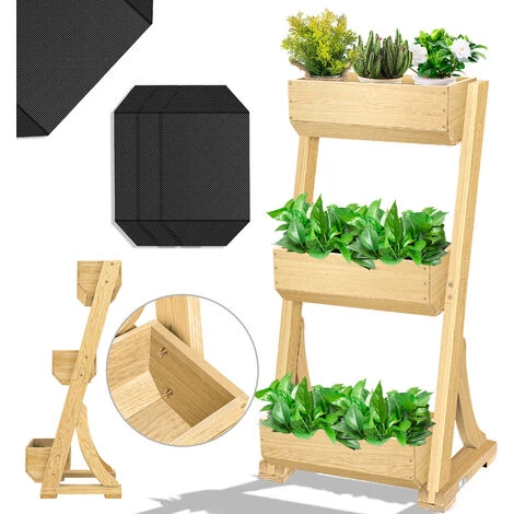 KESSER Fioriera verticale con elevata capacità di carico per una grande varietà di piante, resistente alle intemperie grazie alla lavorazione di alta qualità in robusto legno di abete, esposizione al sole ideale grazie all’angolo regolabile, tessuto non tessuto da giardino incluso per tutti i livelli.