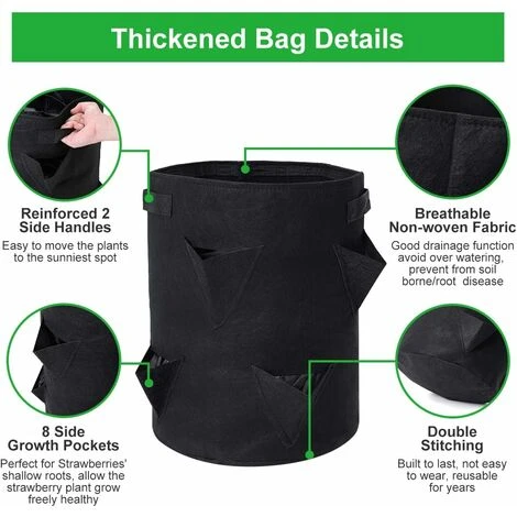 【Ampia applicazione】: adatto per piantare indoor e outdoor. 10 galloni Ideale per patii, piccoli giardini, balconi, verande e qualsiasi spazio esterno. Non solo utilizzabile per piantare patate, taro, ravanelli, carote, cipolle, cetrioli, melanzane, peperoni, zucchine e tante altre verdure. Ma può anche essere usato come custodia, come riporre vestiti sporchi, imballare strumenti, ecc.
