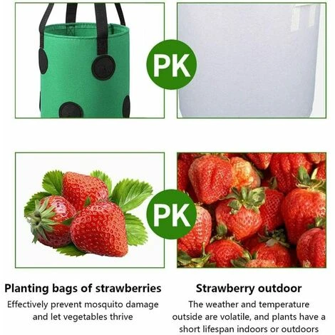 【Qualità Premium】 I sacchetti per la coltivazione delle fragole sono realizzati in tessuto non tessuto ecologico che consente alle radici di respirare a sufficienza grazie alla tecnologia del tessuto traspirante a doppio strato. Con un’eccellente ventilazione, drenaggio e permeabilità.
