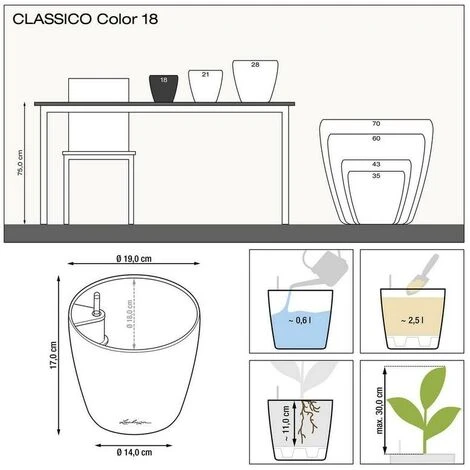 Disponibile in 4 colori, tutti con finitura opaca, i vasi CLASSICO Color LECHUZA sono resistenti ai raggi UV e hanno il foro di drenaggio, due caratteristiche che li rendono adatti anche agli ambienti esterni.