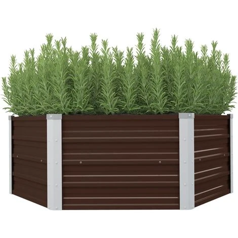 Questo letto di coltura rialzato da giardino è estremamente resistente e bella da vedere. E’ profonda e larga abbastanza per contenere una grande quantità di terra e fornire ampio spazio per le piante, verdure, erbe e fiori. Grazie al suo design dalla forma ad esagono regolare, diventerà un’aggiunta elegante a qualsiasi balcone, terrazza o patio. Realizzata in acciaio zincato e dotata di staffe di supporto interne, questa fioriera è estremamente robusta e resistente. Inoltre, la cornice della fioriera ha una progettazione a bordi piegati, non risultando così pericolosi e taglienti. La fioriera da giardino è facile da montare.