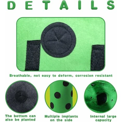 - < li>Materiale di protezione ambientale: il la borsa per piantare piante è realizzata con il materiale PE più resistente ed ecologico e tessuto traspirante. È cucito con precisione, durevole, resistente alla deformazione e alla corrosione e può essere riutilizzato. borsa per piantare fragole, menta, ecc., e appenderle sui corridoi del balcone per risparmiare spazio nell’orto, creare il proprio giardino pensile e abbellire l’ambiente