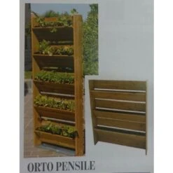 Onlywood Orto Verticale In Legno Verniciato Noce 55 X 40 X 125 H. Cm – Con Vasi In Plastica