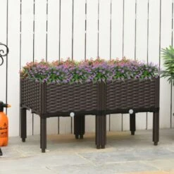 Outsunny Fioriera Da Esterno Rialzata 2 Pezzi Autoirrigante In PP Marrone