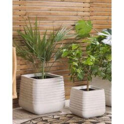 Moderno Vaso Per Fiori Quadrato 38 X 38 X 37 Cm Bianco Sporco Parikia