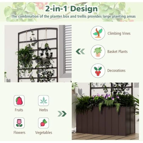 - ★Spalliera di Grigliato per Rampicanti★ La fioriera è dotata di un grigliato alto che è pratico per dare un supporto ai rampicanti o per appendere i piccoli bonsai con i ganci, in modo tale da costruire un piccolo angolo di verde a più livelli utilizzando lo spazio verticale per decorare l’ambiente esterno.
