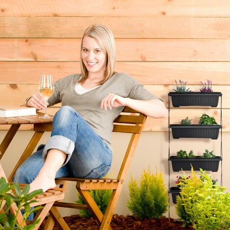 Ami il giardinaggio ma hai poco spazio a disposizione? Con una fioriera come questa puoi sviluppare il tuo orticello in verticale e risparmiare spazio! Le 4 cassette sono perfette per piantare fiori, ortaggi ed erbe aromatiche sul balcone, sulla terrazza o in giardino. La posizione rialzata delle fioriere non solo facilita il giardinaggio, ma protegge anche le piante da erbacce e parassiti. Le fioriere possono essere rimosse e il telaio può essere ripiegato in poche mosse, se necessario.