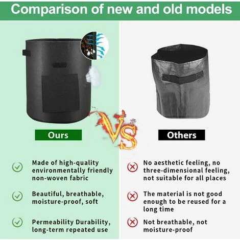 2. I nostri sacchetti per piantare da giardino sono un set di 4 PEZZI, ognuno dei quali ha un volume di 10 galloni. Questa è la dimensione del volume più scientifica per piantare alcune piante (altre case potrebbero non essere 10 galloni, si prega di prestare attenzione al momento dell’acquisto)