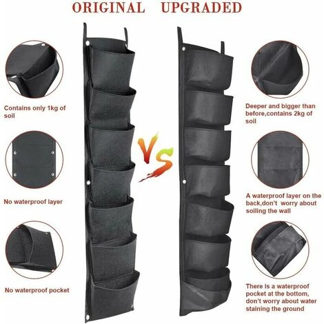 ACQUA DI DESIGN A STRATO IMPERMEABILE – La borsa per piante sospesa è realizzata in tessuto di feltro traspirante per consentire alle radici della pianta di respirare e all’acqua in eccesso di drenare. Abbiamo aggiunto uno strato impermeabile; la parte posteriore e inferiore della sacca per piantare, che può efficacemente impedire al flusso delle acque reflue di inquinare pareti e pavimenti. 7 sacchetti sono abbastanza grandi da far crescere molti tipi di piante, come erbe, piccole piante grasse, fragole, fiori, verdure e altro ancora.