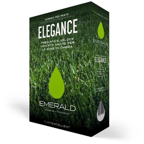 Miscuglio sementi conciate Alta qualità estetica 45% Loietta perenne 40% Festuca rubra 15% Poa Pratense ELEGANCE, indicato anche per le zone in ombra EMERALDGREEN