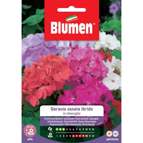 Geranio zonale ibrido F2 in miscuglio: Pianta perenne indicata per la coltivazione in vaso o in vaschette. Trapianto: si consiglia di trapiantare le piantine quando raggiungono l’altezza di circa 20 cm. N.B.: non è possibile per noi sapere la quantità esatta di semi all’interno della busta né la grammatura di quest’ultima!