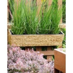 Vaso Di Fiori Beige Rettangolare In Tessuto Sintetico Intrecciato 80 X 20 Cm Kawala